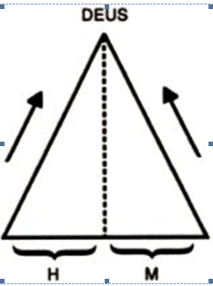 Desse modo irá sendo delineado o triângulo perfeito da realização dos seres humanos para o III Milênio: na base espaços iguais para ambos os pólos (H –Homem M –Mulher), tendo a vertical da linha de evolução a mostrar-lhes o ápice, isto é, Deus ou a Força Central da Vida para onde devem convergir todos os seus esforços, consciente de que ambos se encontram igualmente afastados da Meta, por se constituírem em seres imperfeitos que, pela polaridade que os liga, poderão servir um ao outro de apoio à subida.
